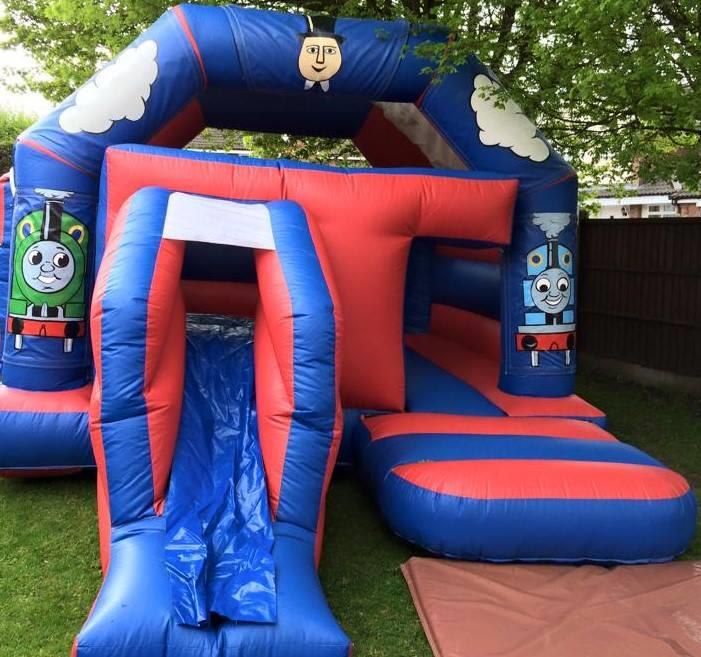 The front slide combo bouncy castle is very popular, with bouncy castle area and with a slide on the front for those smaller gardens, It also has a shower/sun cover. With the added benefit of the slide coming off the front making it ideal for slimmer gardens and parties in Halls