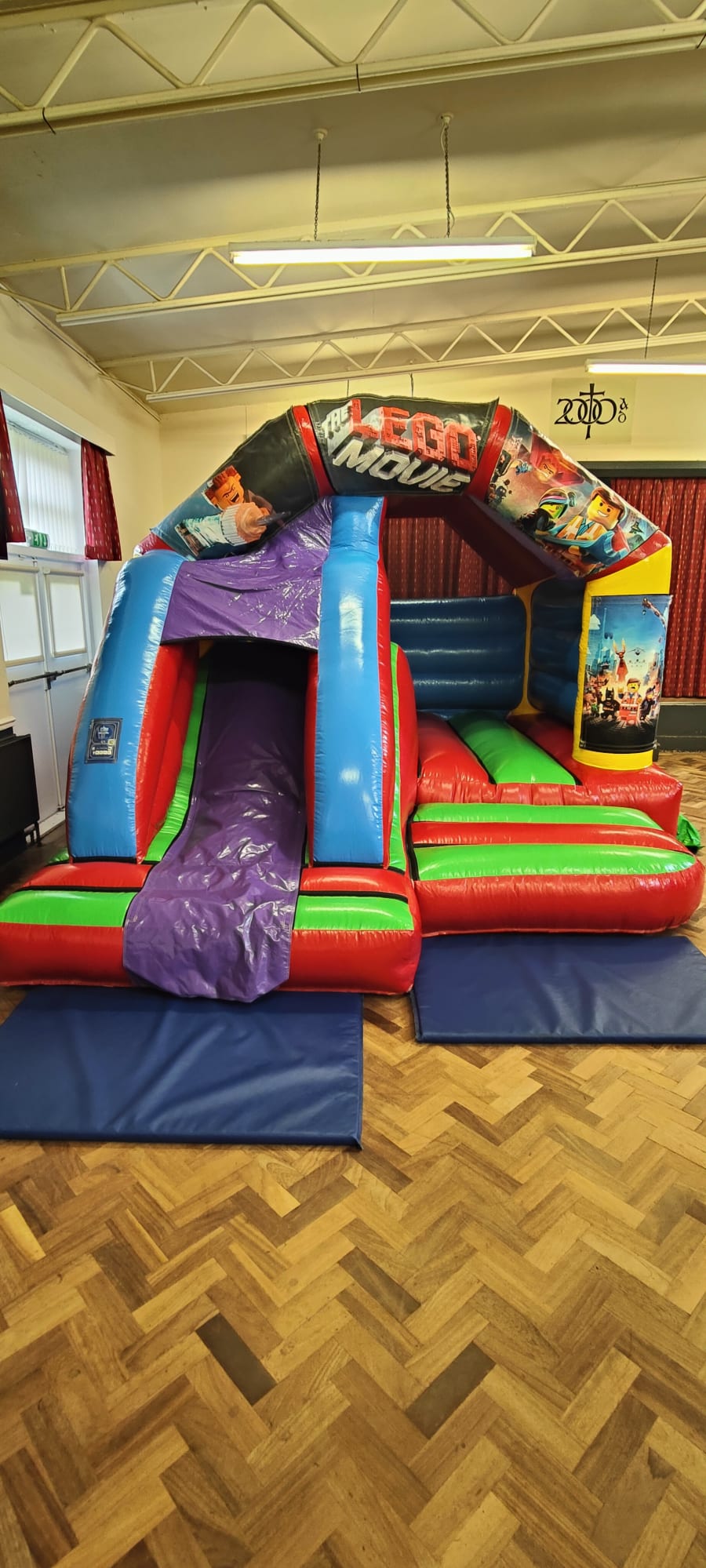 The front slide combo bouncy castle is very popular, with bouncy castle area and with a slide on the front for those smaller gardens, It also has a shower/sun cover. With the added benefit of the slide on the front making it ideal for slimmer gardens and parties in Halls