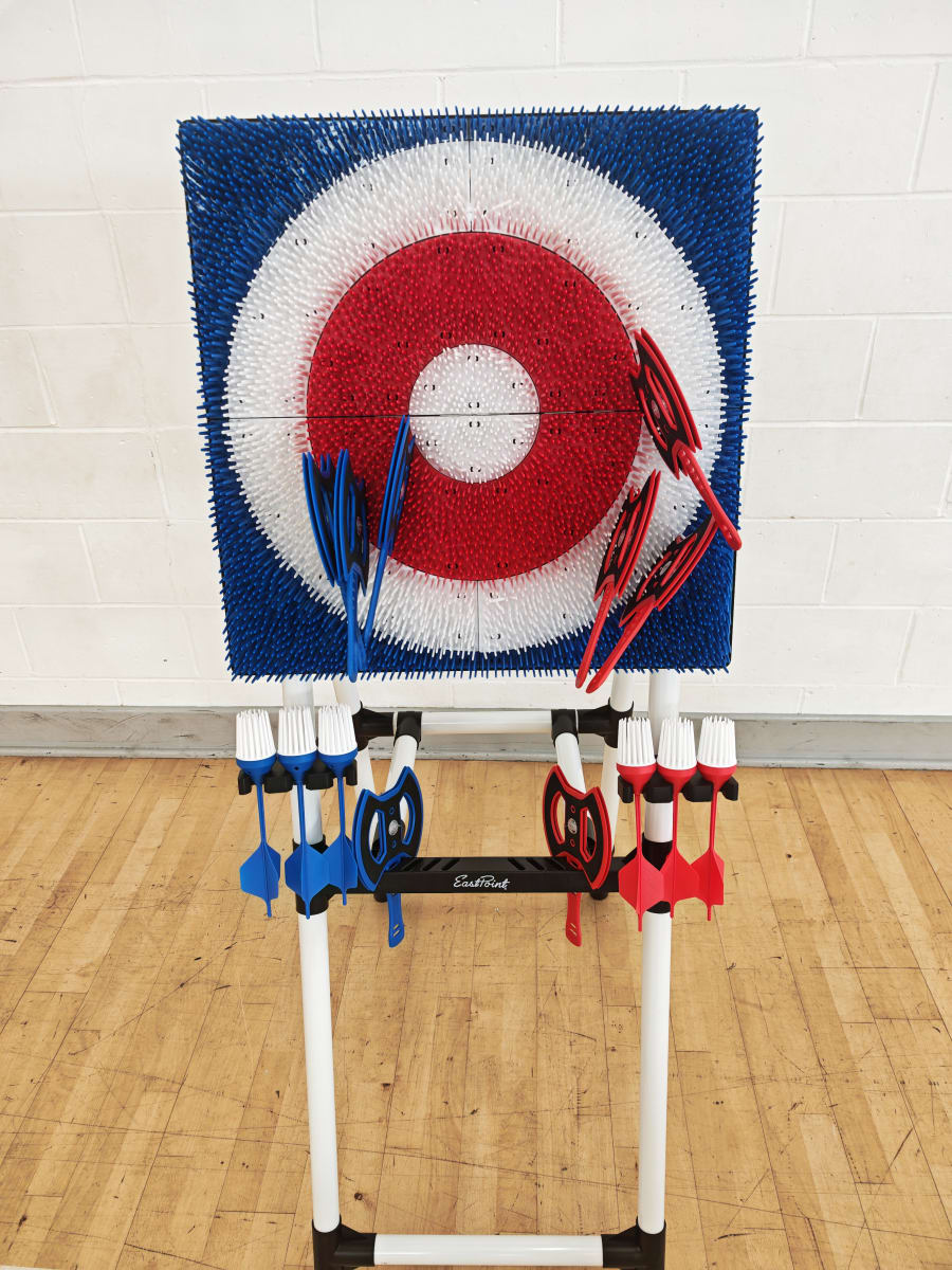 Bring competitive fun to your next event with our Axe Throwing game. Perfect for backyard parties, school fairs, halls, venues and carnivals. This Axe Throwing set is designed for all ages with safe bristle targets and six lightweight throwing axes and 6 Darts. Ideal for adults, youths and supervised kids’ activity. Great to add to a bouncy castle for more fun at your events.