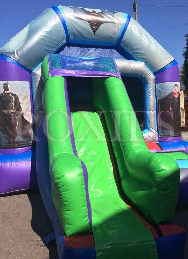 Transform your next event into a Gotham-style adventure with our Batman Bouncy Castle Front Slide in Cannock Chase, Hednesford, Rugeley, Brereton, Armitage, Burntwood, Penkridge, Bridgetown, Norton Canes, Heath Hayes, Rawnsley, Wimblebury, Huntington, Great Wyrley, Cheslyn Hay, and south Stafford and areas in between. Perfect for parties, school fetes, weddings, and more, this inflatable promises hours of endless fun for both kids and adults. Whether you're hosting a garden party or an indoor celebration, this bouncy castle is your ticket to a memorable event.