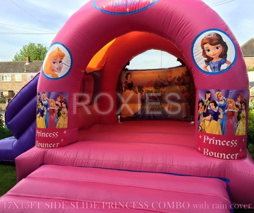 This Princess Bouncy Castle is 17x15ft with a side slide and open bouncy space. Delivered to your door set up by professional staff, all you need to do is provide a power socket and enjoy and make your memories.
