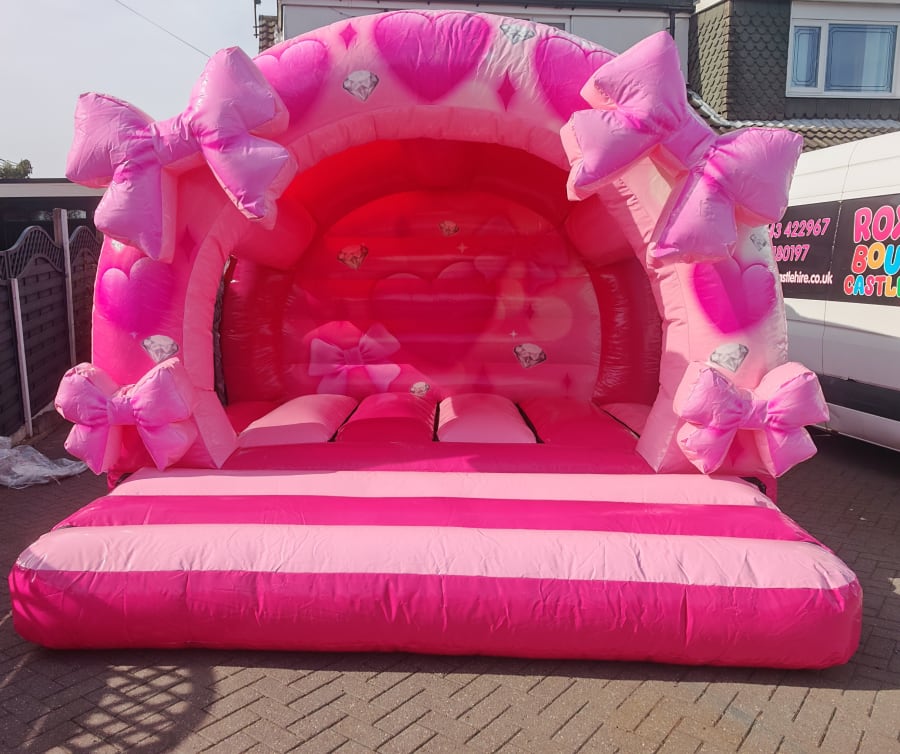 Make your party pretty in pink with Bow's and Hearts. 🎉 This 12x12ft Pink 3D Bows and Hearts bouncy castle delivers vibrant visuals and hours of safe play. Ideal for birthdays, family fun days, weddings and community events. Kids love the bows, hearts and graphics. Parents appreciate the full view and built‑in safety features. 💖